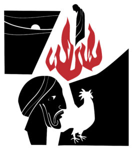 Peter has three chances to confess that he knows Christ. Three times Peter fails. He would have to live for a while with the overwhelming emptiness of his disloyalty and failure. We know that weakness of the flesh, too, when we deny Jesus with our words or behavior, seeking to avoid negative consequences to our reputation or our income or our life. Apart from Christ, Peter can do nothing, in spite of his good intentions.