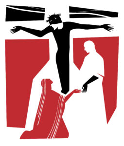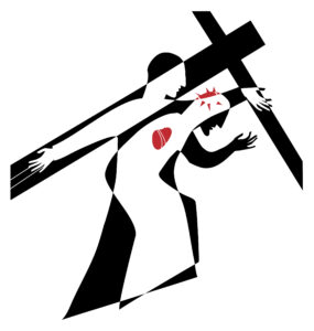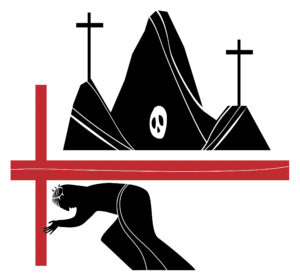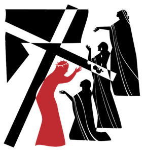 And so a man named Simon of Cyrene is compelled to carry Jesus’ cross. Simon was in the city for the Passover feast and was probably pulled out of the crowd randomly by the Roman soldiers to do this duty. And yet it wasn’t entirely by chance that this happened. For God chose Simon to perform this special task which would give a vivid picture of Jesus’ own words, “If anyone would come after Me, he must deny himself and take up the cross and follow Me.”